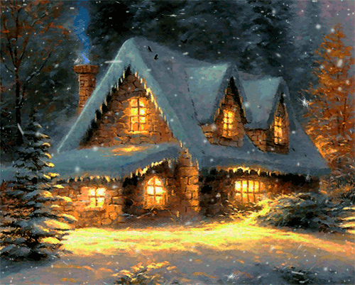 A cosy house to get us into the Season’s spirit. From Painter of Light, Thomas Kincade, this is Christmas cottage 2.