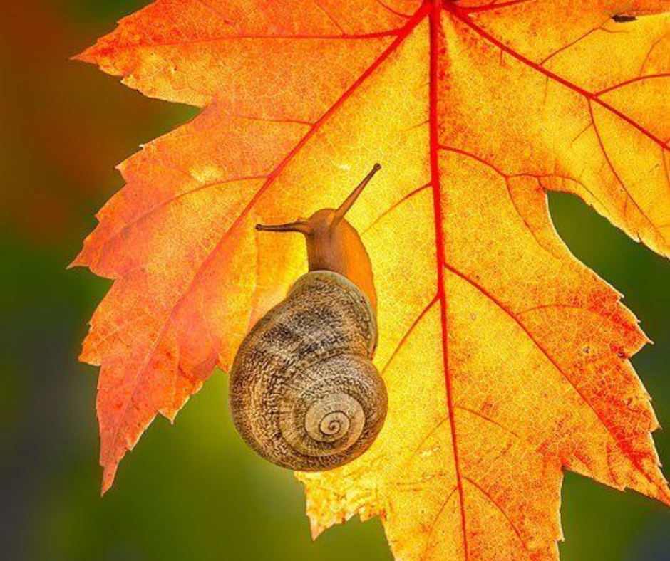 As I brought Mr Shackleton home from Church last night, we saw a small snail moving up his door. It is hardly surprising with the flip flop of Indian like Summer to downpours that we’ve been having. These little creatures, along with the slugs are making a ‘run’ for it. They do not elicit much compassion as humans tend to feel warm and fuzzy about other kinds of life, but they are all fascinating in their own way, and their toil is not easy.