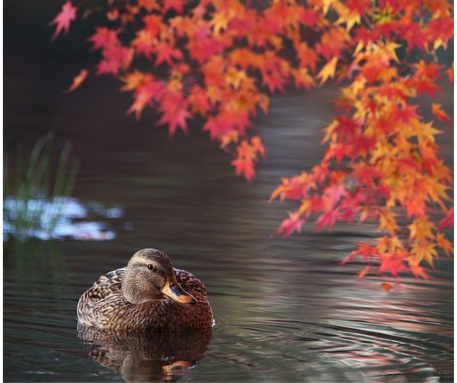 A female mallard has a moment of peace as she moves through the Autumn time and the temps begin to drop. She like her colourful male companion, along with swans and geese of UK will stay put for the winter and actually be joined by many migratory birds from more northern areas taking their wintering here. Ducks can generally cope with temperatures of 7 degrees C, and prefer cooler temperatures. and snack on weeds, snails insects and slugs, while roosting in shrubs near to water. Symbolism is vast. She can be a sign of prosperity, abundance and a messenger from the Divine.