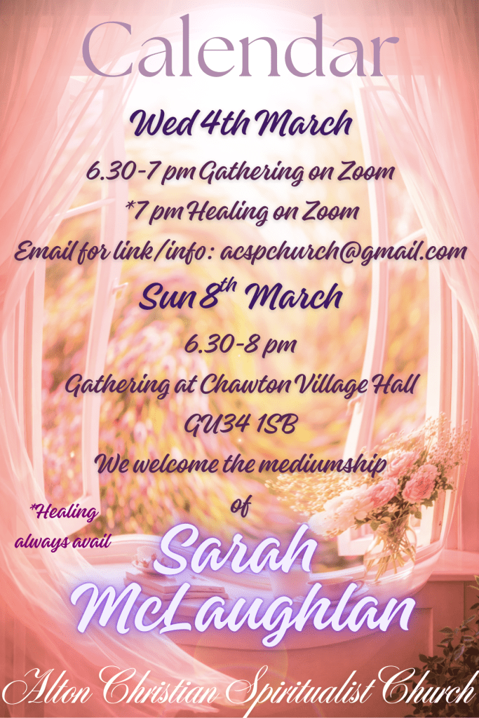 We gathered last night in Chawton to enjoy Irene Hall and Em Dowsing, who came to visit. Irene shared some lovely, inspired thoughts, and then they both gave lovely messages for the family. Thank you so much, ladies!! Our own Chris Shore chaired our evening beautifully. Thank you to our prayer people, our music team, our hospitality, as well as all those who set up, break down, and wash up. As always, a special thank you to our healers and those learning.